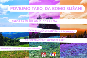 Zveza prijateljev mladine Maribor organizira tabor za mlade POVEJMO TAKO, DA BOMO SLIŠANI. Vabljeni vsi med 15. in 29. letom, ki vas zanima, kako priti od ideje in želje po spremembi v družbi do dejanskega rezultata. PRIJAVI SE, ČE ŽELIŠ: soodločati v družbenih procesih, ki zadevajo tvoje življenje, imaš idejo, kako spremeniti okolje na bolje, pa je ne znaš uresničiti, sooblikovati tako svojo prihodnost kot prihodnost družbe, krepiti veščine javnega nastopanja, izražanja svojega mnenja in organizacijske sposobnosti. Preko različnih delavnic
