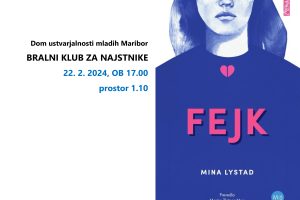 Dragi mladi bralci, z velikim veseljem vabimo na srečanje BRALNEGA KLUBA za najstnike! V prostorih DUM-a (Razlagova 16, Maribor – sedež ZPM Maribor) bomo znova gostili bralce, ki ne samo uživate v branju, ampak bi se radi tudi aktivno pogovarjali o knjigah, ki jih preberete. Bralni klub je namenjen učenkam in učencem od 6 do 9. razreda. Vabimo vas: Datum: 22. 2. 2024, ob 17.00 Kraj: ZPM Maribor, Razlagova 16 Moderatorica: Mateja Vdovič Knjiga: "Fejk" (Mina Lystad, 2021) Delo naslavlja