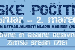 USTVARJALNE DELAVNICE RECIKLIRAMO! - od 26. 2. do 2. 3., od 8.00 do 16.00, v Domu ustvarjalnosti mladih Maribor (DUM) Plastenke, kozarce za vlaganje, WC-rolice, zamaške, … lahko z nekaj domišljije in ustvarjalne žilice preobrazimo v unikatne uporabne in okrasne izdelke. Iz odpadkov bomo izdelali tudi pripomočke za skupinske igre, ki jih bomo seveda preizkusili. »PLEŽUHOVA« DELAVNICA - od 26. 2. do 1. 3., od 9.00 do 13.00, v DUM-u S seboj prinesi staro smučko, mi pa bomo poskrbeli za ostale materiale, ki