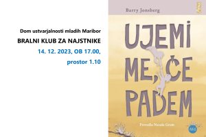 Dragi mladi bralci, z velikim veseljem vabimo na srečanje BRALNEGA KLUBA za najstnike! V prostorih DUM-a (Razlagova 16, Maribor – sedež ZPM Maribor) bomo znova gostili bralce, ki ne samo uživate v branju, ampak bi se radi tudi aktivno pogovarjali o knjigah, ki jih preberete. Bralni klub je namenjen učenkam in učencem od 6 do 9. razreda. Vabimo vas: Datum: 14. 12. 2023, ob 17.00 Kraj: ZPM Maribor, Razlagova 16 Moderatorica: Mateja Vdovič Knjiga: "Ujemi me, če padem" (Barry Jonsberg,