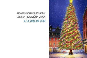 Naša druga pravljična ura bo zimsko obarvana. V petek, 8. 12. 2023, ob 17.00 vas prijazno vabimo v Dom ustvarjalnosti mladih, prostor 1.3 (Razlagova ulica 16, Maribor). Z nami bo Mateja Vdovič, s katero bomo odkrivali skrite kotičke zimskega časa, ko prazniki s svojo magičnostjo napolnijo srca. Pravljična ura je posebej prilagojena starejšim otrokom v vrtcu in učencem prve triade osnovne šole. Po pravljici bomo ustvarjali v praznični delavnici. Vabljeni!