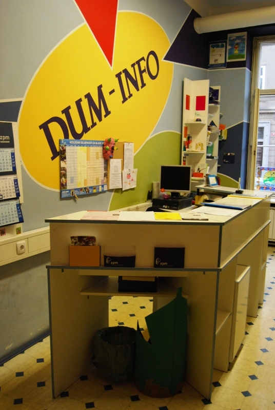 V pritličju se nahaja informacijska pisarna INFO -DUM.