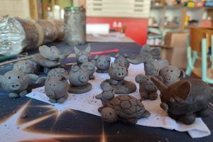”Team building” in delavnica z glino, na kateri smo z likovno pedagoginjo Metko Ciglar izdelali pujske in druge živali za srečo.
