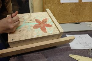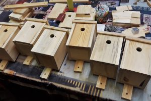 Lesarsko-likovna delavnica: izdelovanje in barvanje ptičjih gnezdilnic. Gnezdilnice so končane, skupaj z društvom DOPPS jih bomo namestili na drevesa.