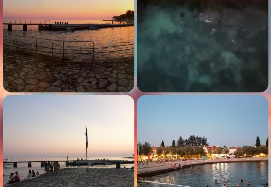 Po zgodnejši večerji smo se odpravili na plažo. Zvečer je ob morju še posebej lepo. Danes smo dobili sponzorske majice, ki jih je doniralo podjetje Inštitut Wcycle Maribor (pod evropskim projektom Urbana zemljina za hrano – Urban soil 4 food), in ko smo se prikazali na plaži, je bil učinek res velik. Skupno slikanje, zadnji skok v vodo, supanje, zadnje kune za krompirček in sladoled, pa kakšno sadno kupo…Naša Amadeja, ki nas že skozi vso izmeno razvaja s svojim petjem, je na obali uprizoril ob morju pravi koncert. Turisti so se ustavljali, ugibali, spraševali. Bilo je prelepo. Nadaljevali smo s plesom in šele, ko se je zares stemnilo, odšli proti VIRC-u.