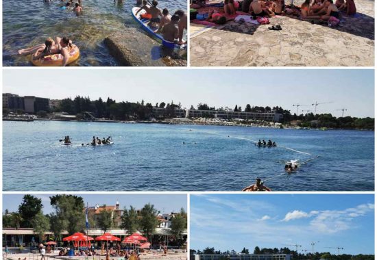 Vročina v Poreču ne pojenja. A ob morju je vse lažje. Naša Nina nas je danes razveselila z novico, da so skoraj vsi naši kamenčki splavali. Bazen jim je varno, poznano okolje; majhna skupinica zdaj že prijateljev si zaupa in Nina – Nina je poglavje zase. Srčna, nežna, ravno prav odločna, skrbna. Dopoldne v bazenu, popoldne v morju. Vedno znova se veselijo plavalnih uric in iz njih se vračajo nasmejani.