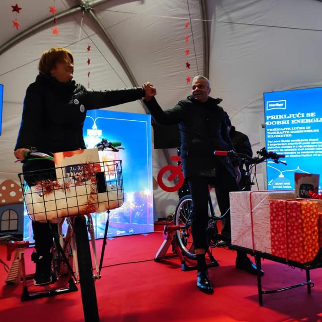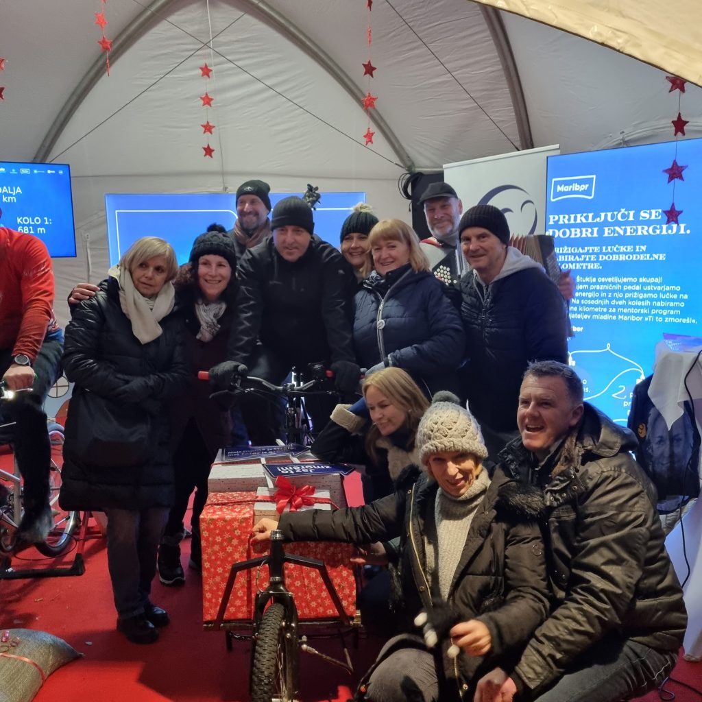 V okviru dobrodelne akcije so se nam na Trgu Leona Štuklja pridružili tudi posebni gostje, ki verjamejo, da je program za mlade vredno podpreti. Na dodatnih kolesih MBajk smo prižigali lučke na praznični jelki.