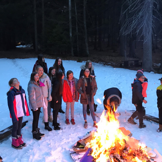 Po kosilu smo za vse otroke tabora izbrali primerno igro izven doma v naravi LOV na Skriti Zaklad, da zbistrijo svoje možgane in razgibajo svoje telo. Tudi tu se je pokazala njihova energija in sodelovanje med njimi. Našli smo ga. Ker pa so popoldan temperature padle pod 0 stopinj Celzija smo se odločili, da zakurimo taborni ogenj in se ob njem tudi malo pogrejemo, vendar nas je že hitro priganjal čas na večerjo. Po večerji pa smo izpeljali še disko večer v ritmih slovenske glasbe ter pozno v noč padli v postelje tako. Dan je bil več kot fenomenalno izkoriščen, prijetno z koristnim…