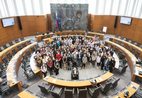 V ponedeljek, 11. aprila, je v veliki dvorani Državnega zbora RS potekalo zasedanje 32. nacionalnega Otroškega parlamenta® (NOP) v okviru Zveze prijateljev mladine Slovenije (ZPMS). 111 mladih parlamentarcev iz vse Slovenije je razpravljalo o osrednji temi Moja poklicna prihodnost oz. petih podtemah: »Moj poklic: skrbi, pričakovanja, znanja in veščine; Poti do mojega poklica; Poklici sedanjosti in poklici prihodnosti; Slovenija, Evropa, svet – pozitivno, negativno, zanimivo; Vpliv covid-19 na izbiro poklica.« Uvodoma jih je pozdravil predsednik Državnega zbora Republike Slovenije g. Igor Zorčič. Spodbudne besede sta mladim parlamentarcem namenila tudi predsednica ZPMS ga. Darja Groznik in predsednik Republike Slovenije g. Borut Pahor.
