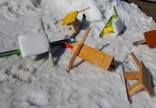 Še nimaš tega super snežnega vozila? Pridi na našo lesarsko delavnico in si ga izdelaj. V petek, na »dirki s poki« na Pohorju, ga že lahko preizkusiš. (David Stošić)